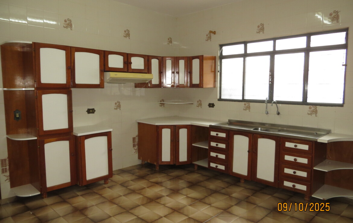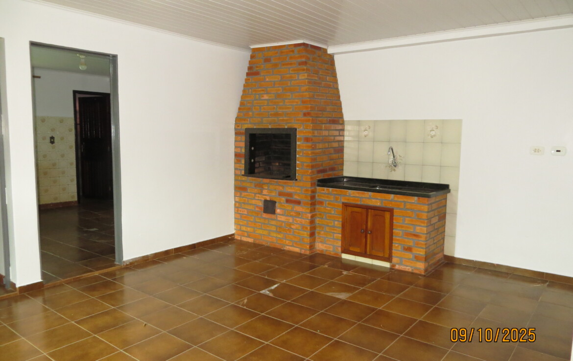 1 suíte, 02 quartos, sala, cozinha com armários, wc social, edícula com churrasqueira,