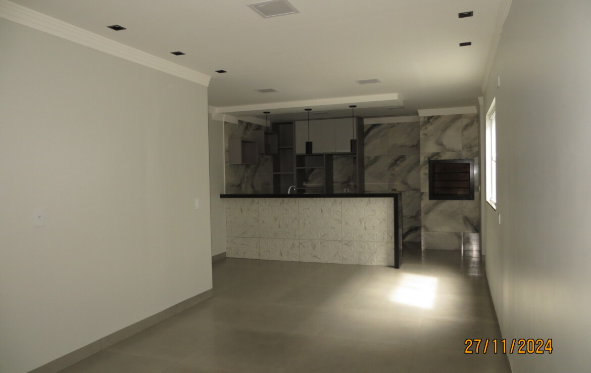 01 suíte, 02 quartos, sala, wc social, área gourmet, lavabo, lavanderia, estendal garagem.