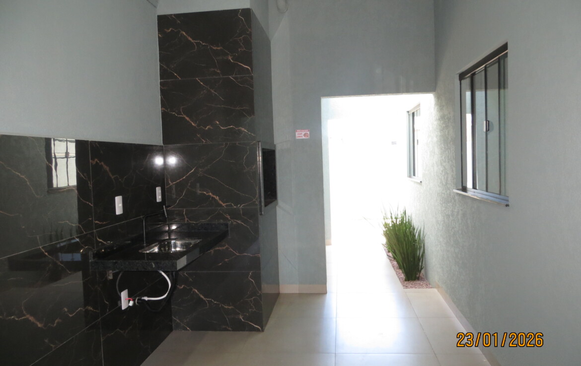 02 quartos, sala, cozinha, wc, edícula c/ churrasqueira, lavanderia e garagem.
